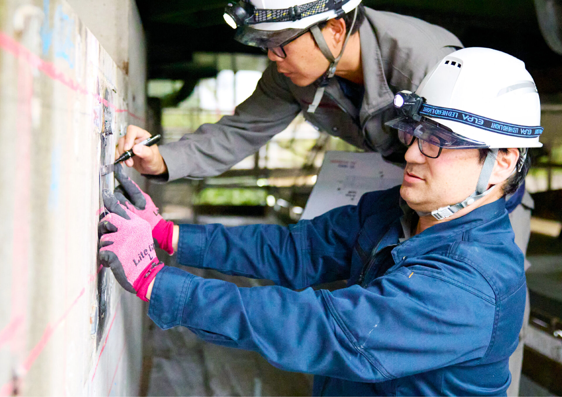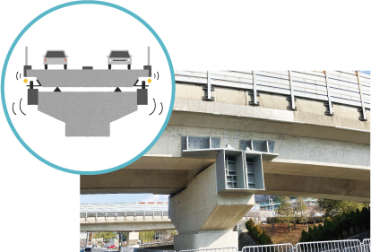 橋が強い揺れを受けても落ちたり倒れたりしないよう、橋脚や橋げたを補強する耐震工事を行っています。大きな地震が起きても道路ができるだけ早く使えるように備えています。