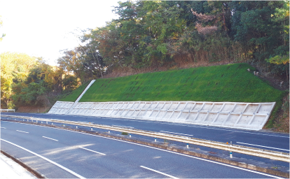 大雨で斜面が崩れないよう、コンクリートの格子で斜面を守ったり、土の中の余分な水を逃がすパイプを設置したりしています。こうした工事によって、土砂災害のリスクを減らしています。